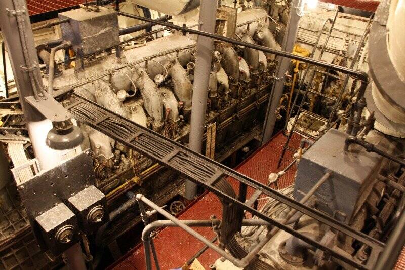 This is the engine/boiler room of the USS Slater, a ship used in World War II. Rippon would have done electric work in a room similar to this on the several ships he was stationed on throughout his career.